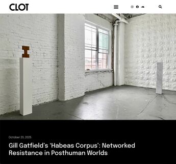 Published in CLOT Magazine, that explores experimental intersections of art, science, and technology, an in-depth review by neuroaesthetics scholar Tamar Torrance examines Gill Gatfield’s New York installation Habeas Corpus at the NARS Foundation. The review traces how the work merges deep time and ancestral consciousness with AI and AR systems to foreground the body as both subject and sensor—mapping Gatfield’s choreography of minimalism and code where matter, memory, and machine interlock in an inseparable world-self.