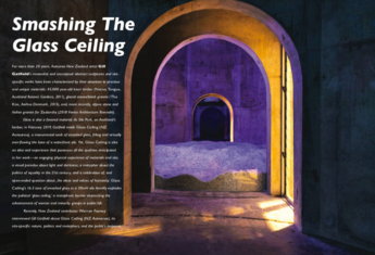 May-Aug. 2019. "At night with the play of light, Glass Ceiling appears to have an aura. In the daylight, it seems edgy and difficult but, when sunlight fills the space, it is suddenly luminous and seductive." Art critic Warren Feeney considers the sensory impact of Glass Ceiling (NZ Aotearoa) in an indepth interview with the artist, exploring the work's materiality, site-specific content, politics and metaphors, and the public's response. 'Smashing the Glass Ceiling' World Sculpture News, Winter 2019, pp46-50
