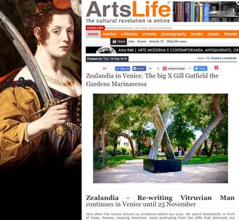 18 Sept. 2018. The international online arts newspaper Artslife.com features a review by Andrea Lombardo, 'Zealandia - Re-writing Vitruvian Man', reflecting on the crucifix form of the ancient stone sculpture in the context of nature, science and Renaissance ideals. English Translation. Artslife website:
